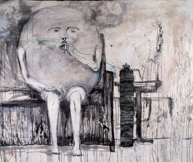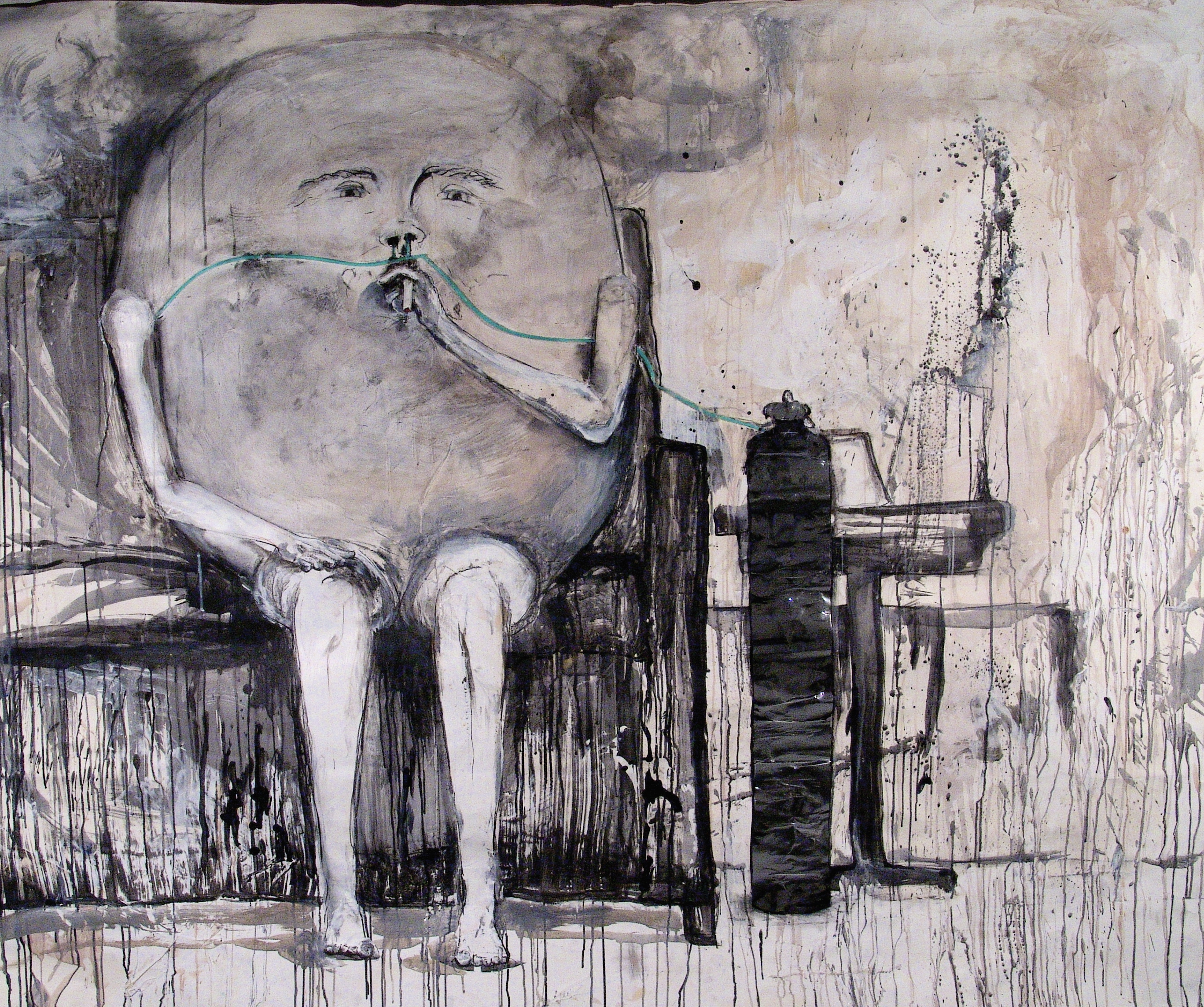 Tubing, Metallic Paper, Ink, Charcoal Acrylic on Paper